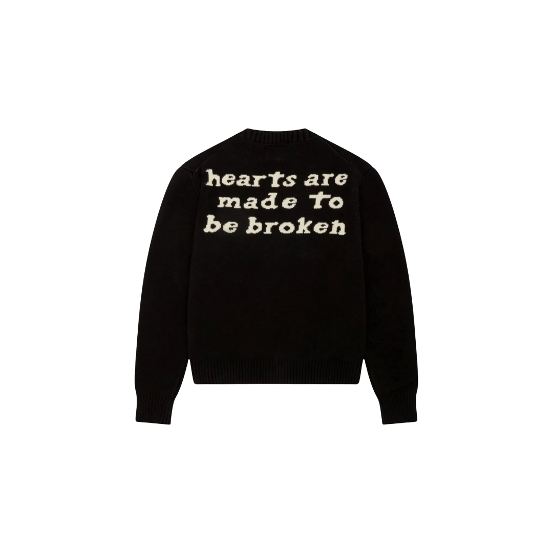 BROKEN PLANET 'HEARTS ARE MADE TO BE BROKEN' MIDNIGHT BLACK KNIT SWEATER