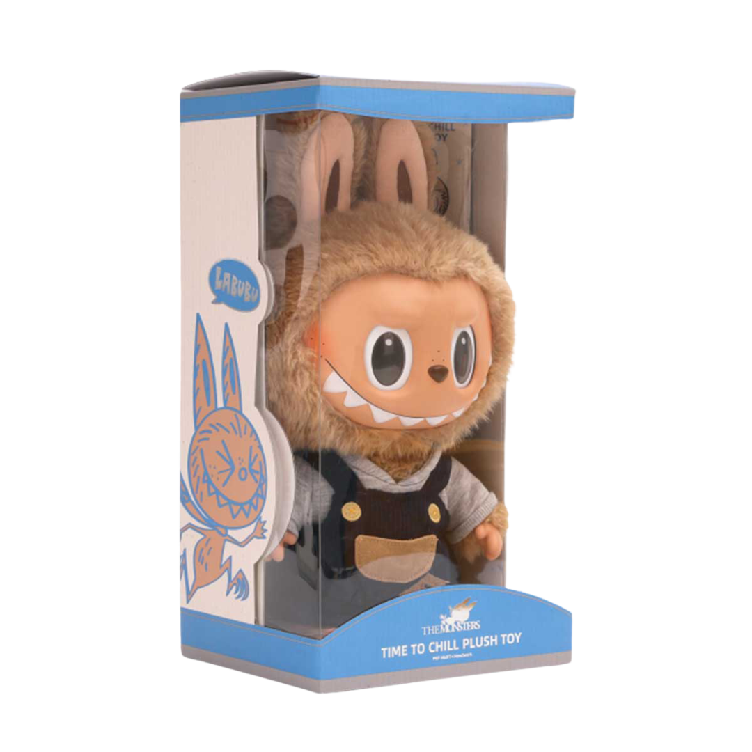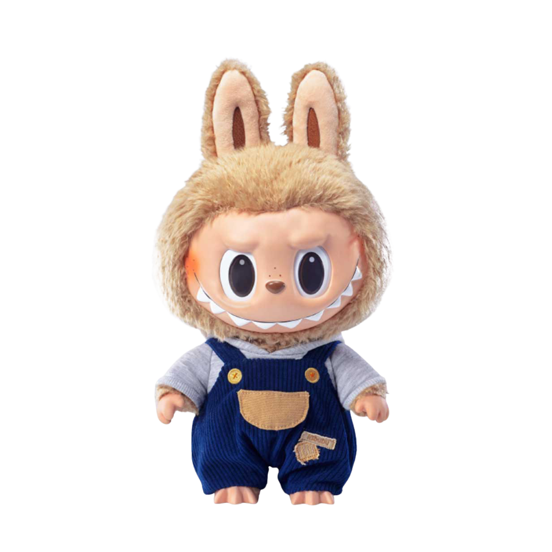Kick back with a fan-favourite Labubu built for cosy vibes and clean display. A glossy vinyl face and hands meet a soft plush body in laid-back dungarees—cute on a shelf, huggable off it.